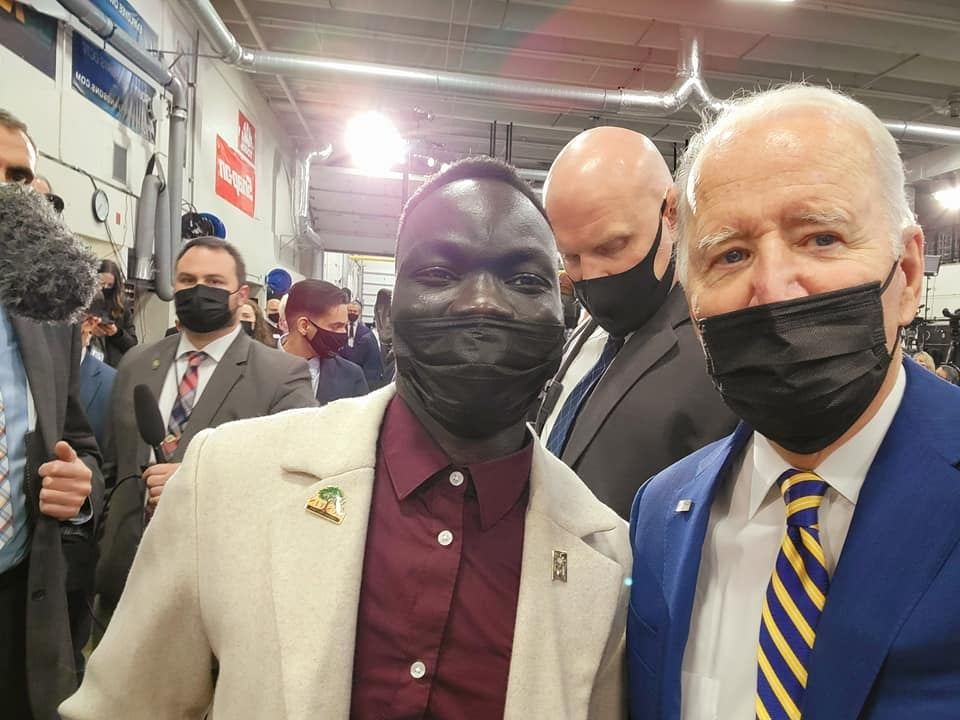 Austin, MN, December 04, 2021(GSN) - Gambella born Oballa Oballa an Anywaa and Austin's First Ward councilman from Gambella Community in Austin, Minnesota met 46th President of the United States on December 02, 2021, at Dakota County Technical College following the Commander in Chief's infrastructure law speech.