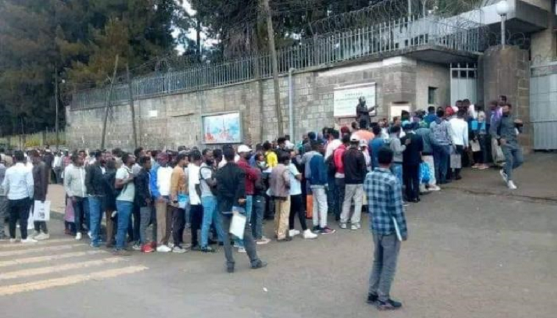He said the would-be recruits are former members of the Ethiopian army, who do not have jobs at the moment. Having heard that the Russian embassy is currently recruiting, he said he and others came with their credentials. He said he even brought the clearance he received after serving in the military.