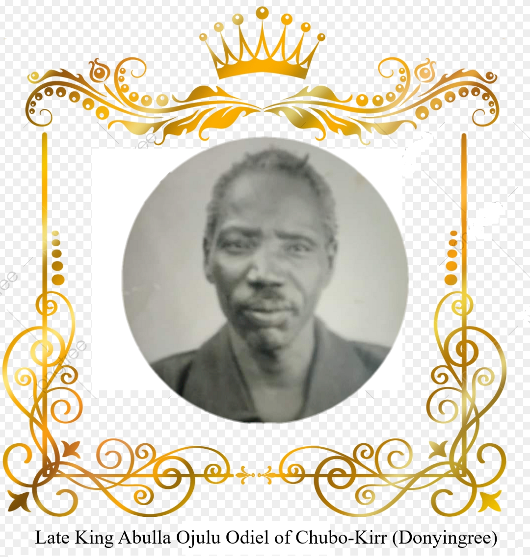 King Ojulu Odiel Ngenyo “Wara-Agoro” of Chubo-kirr (Donyingree), was a diplomat and representative of the Ethiopian parliament during Emperor Haile Selassie's regime. He was one of the rulers who invited highlanders in Anywaa’s land mainly from Walaga and Ilubabor then, now the Oromia region for the purpose of Buffalo hunting for Oromo traditional custom horns and skin for marriage and souvenirs. In return, many Anywaas went to the Oromia region during the summer and winter seasons seeking jobs in coffee plantations and harvest. King Ojulu Odiel was succeeded by his son late king Abulla Ojulu Odiel “Wara- Awaitty” who died from stress at sometime shortly after the Derg regime deposed Emperor Haile Salassie in 1974 due to physical, emotional, and physiological abuse from Derg cadres. He is survived by his son elder Prince Didumo Abulla Ojulu a veteran and retired Gambella regional health expert and his daughter princess Ajulu aka “Admittee” Abulla Ojulu who now lives in Minnesota, USA.