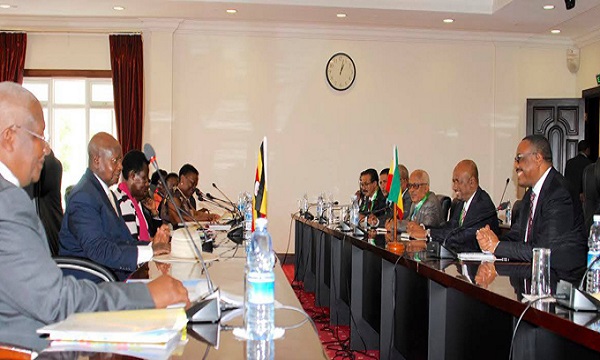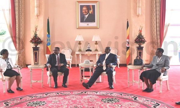 Desalegn, who is accompanied by his wife, Roman Tesfaye Abney arrived in the country earlier today and was this afternoon received at State House, Entebbe by his host President Yoweri Museveni and the First Lady Janet Museveni. The two leaders held a joint press conference at State House where they agreed to work together in the stabilization of South Sudan, using the Intergovernmental Authority on Development (IGAD), which is currently chaired by Desalegn.