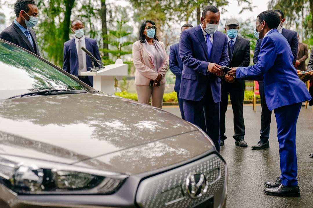 “As we transform Ethiopia’s greening & climate resilient aspirations into concrete actions through the #GreenLegacy initiative, this morning I received the first electric car fully assembled in Ethiopia. No emission cars can help reduce pollution.”
